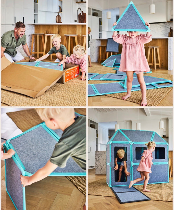 Ganz einfach! Die Magnetplatten lassen sich schnell zusammenstecken, sodass Kinder in wenigen Minuten Burgen, Tunnel und Schlösser bauen können – und sie genauso einfach wieder auseinandernehmen können.